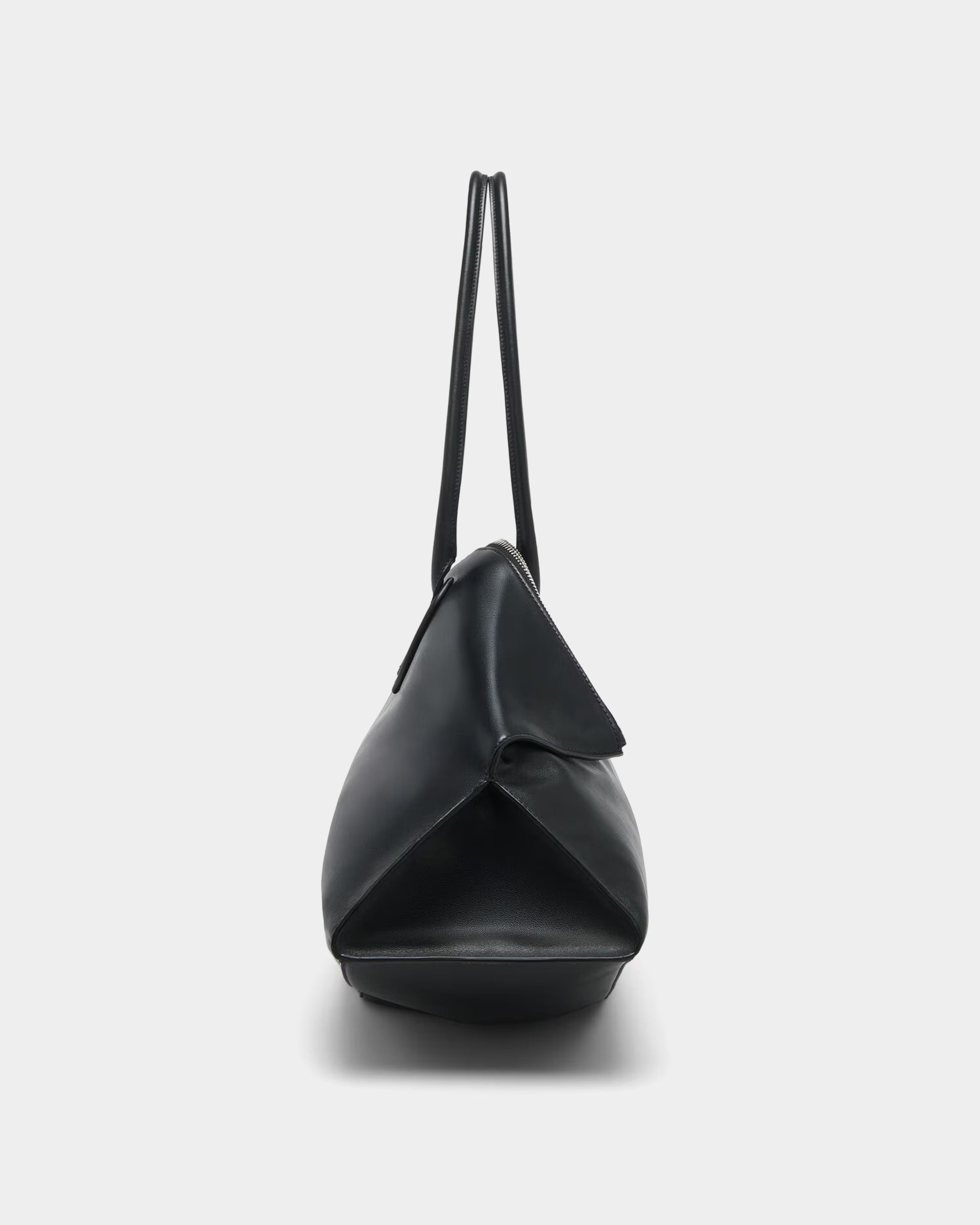 精湛手工採用建築感幾何構造,並以小牛皮揉合摺疊式上緣與波浪形底座,在皮革質感中構築出充滿張力的視覺層次。經典手柄設計配有 ALEXANDER MCQUEEN 高頻壓印燙金標誌,此款特別結合了超大尺寸的廓形與圓柱狀提把,展現品牌獨有的神祕美學。