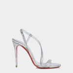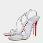 以纖細交錯鞋帶設計勾勒足部線條,搭配細長高跟展現極致優雅;銀色質感光澤在燈光下閃耀奢華氣場,結合標誌性紅底,讓這雙涼鞋成為晚宴、派對與正式場合的最佳選擇,演繹性感與高貴並存的女性魅力。