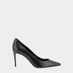 以經典的尖頭設計搭配壓紋亮面皮革,展現俐落優雅的氣質。細高跟線條修長流暢,散發性感自信魅力,同時體現品牌的精緻工藝與時尚美學。