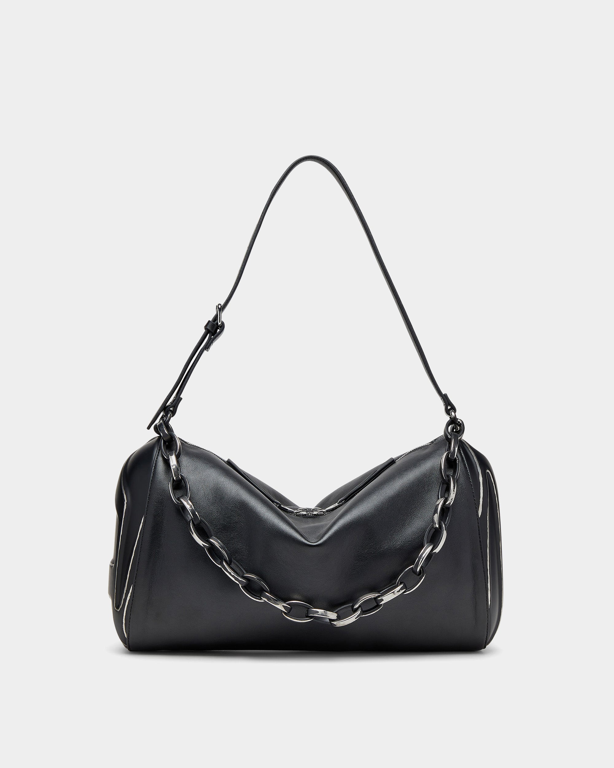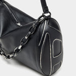 於 2025 秋冬時裝秀中首次亮相,這款肩背包是一款多功能的中性配件。包款以亮面再生聚氨酯材質製成,呈現微微柔軟的長方形輪廓,兩側 Oval D 面板經刷色處理,帶有做舊質感,隱約透出的金屬銀色細節突顯標誌性 logo。可搭配厚實金屬鏈條背帶,切換不同造型風格。