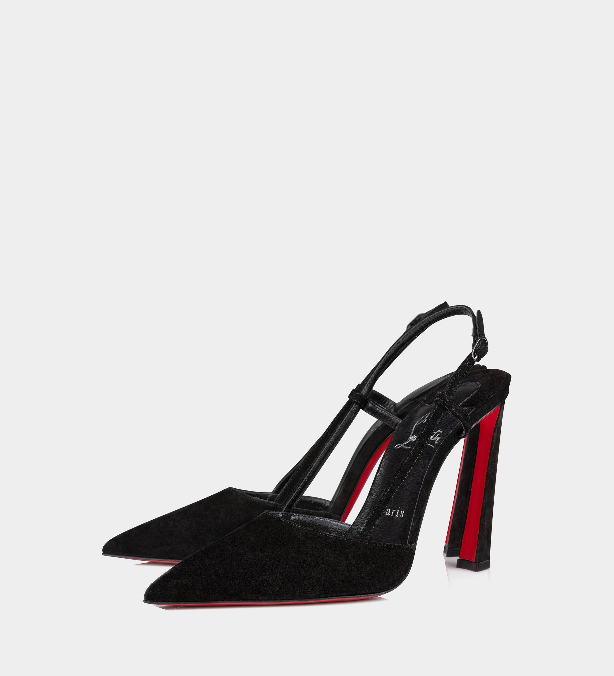 CHRISTIAN LOUBOUTIN 黑色麂皮細帶高跟鞋