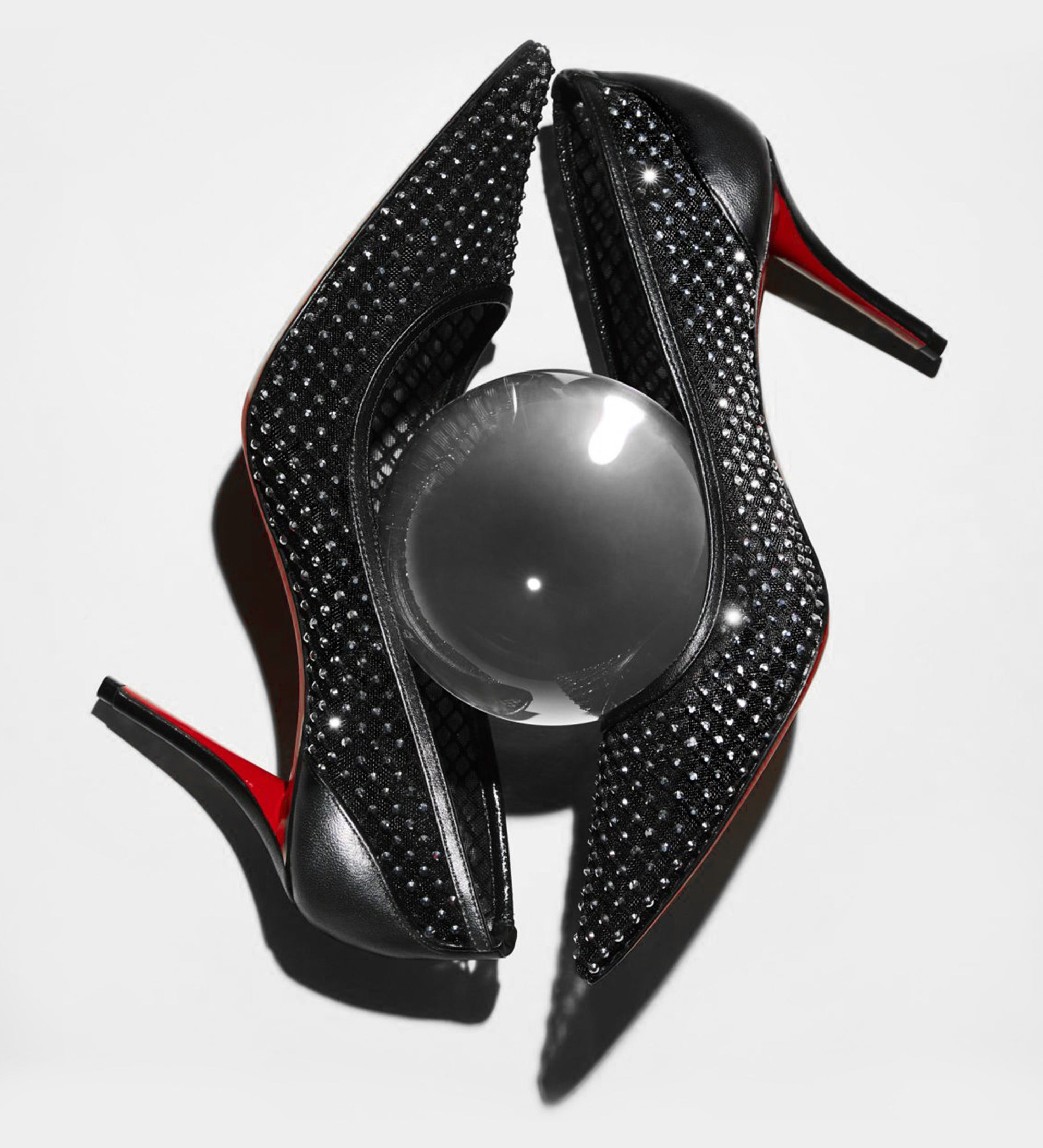 CHRISTIAN LOUBOUTIN 黑色透明水鑽高跟鞋
