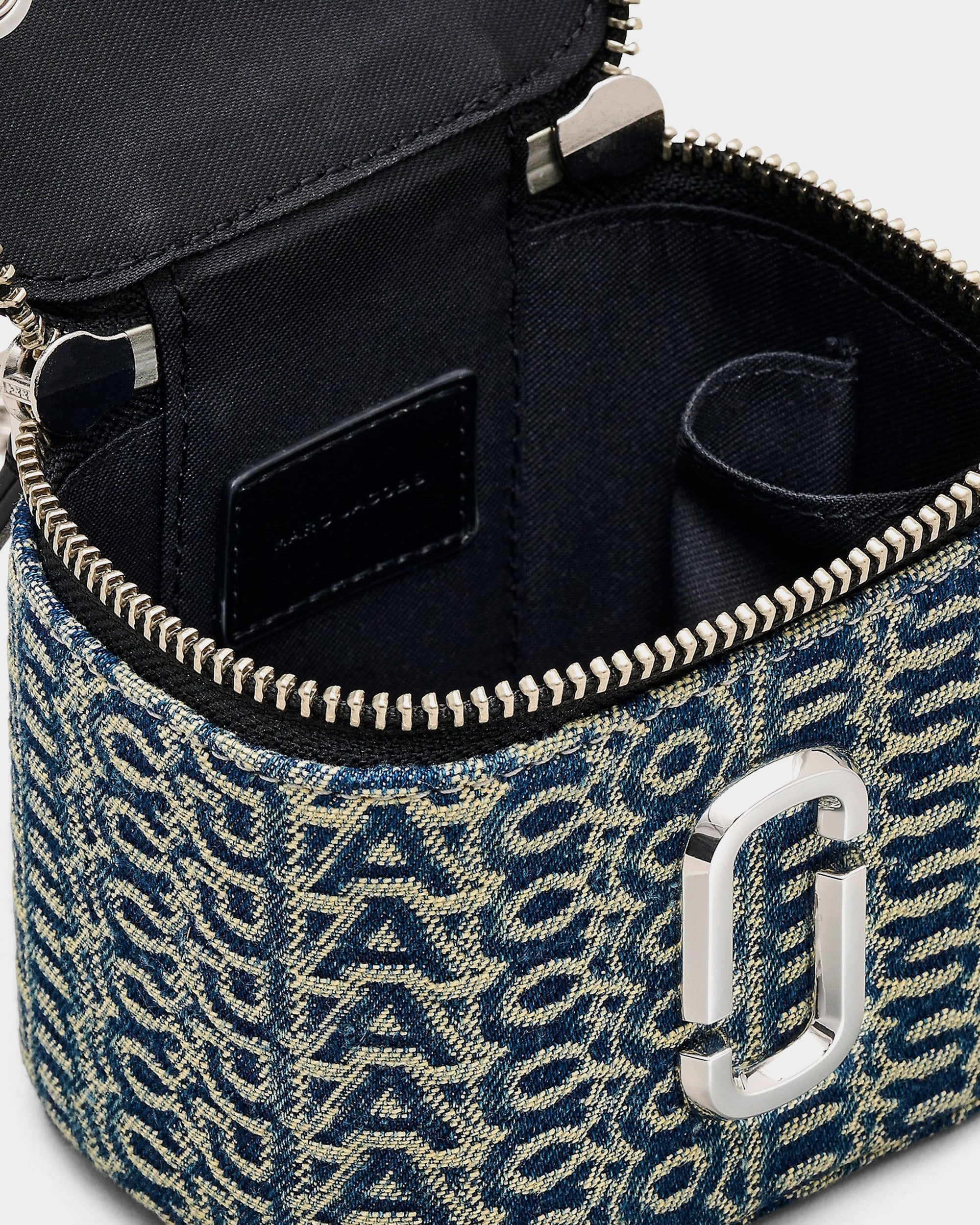 採用質感牛仔布搭配品牌經典 Monogram 印花,搭配兩向拉鍊開合設計與內置唇膏夾,附精緻鍊條可作斜背或肩背,輕巧尺寸適合收納鑰匙、手機與卡片。