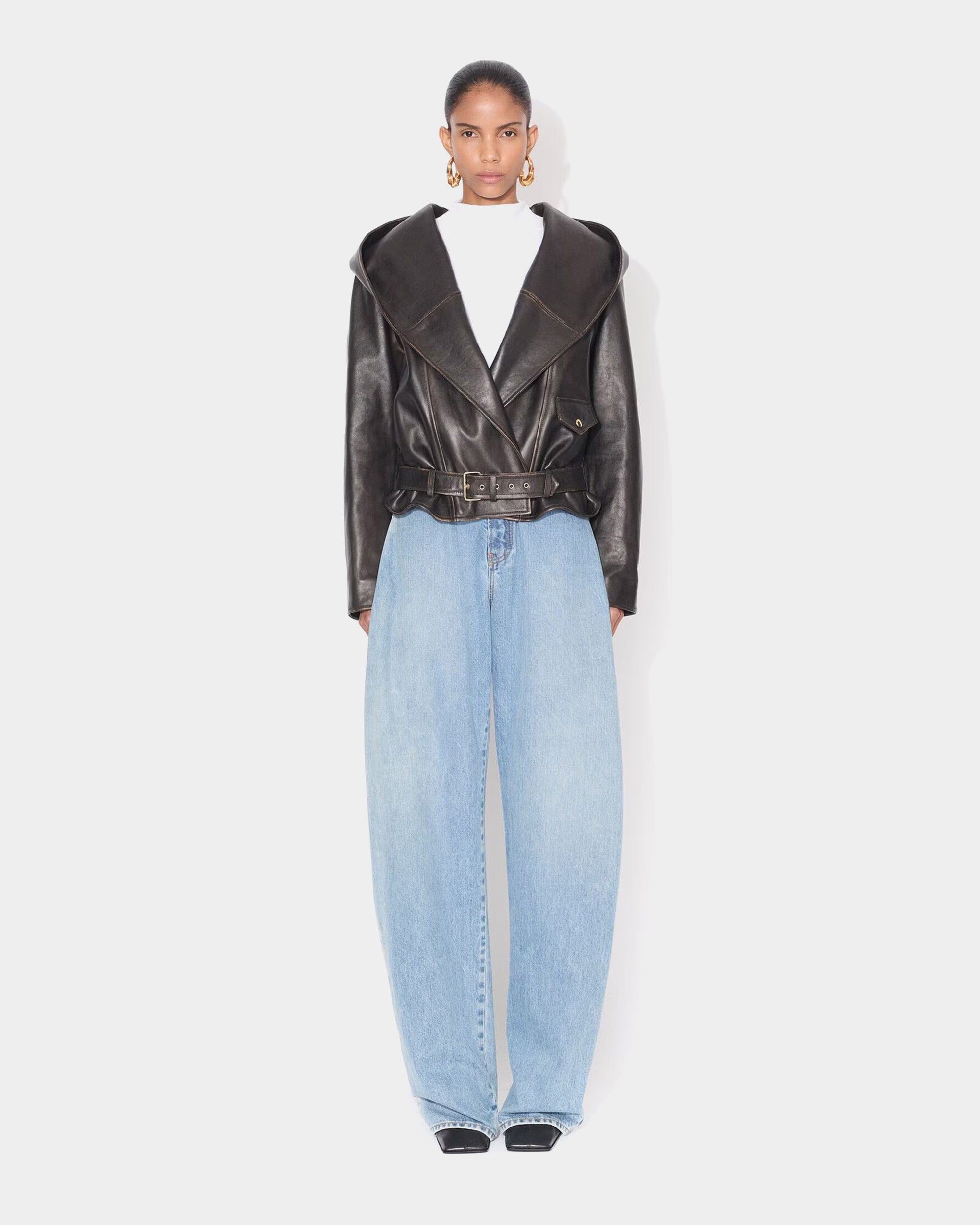 採用高質感厚實棉質面料,完美呈現品牌標誌性的寬版結構美學。俐落的平整領口搭配立體連袖設計,在簡約中構築出充滿建築感的肩頸線條。獨特的寬鬆廓形不僅賦予穿著極佳的舒適度,更能輕鬆穿出當代流行的鬆弛感,是極簡風格愛好者不可或缺的高級感基本款。