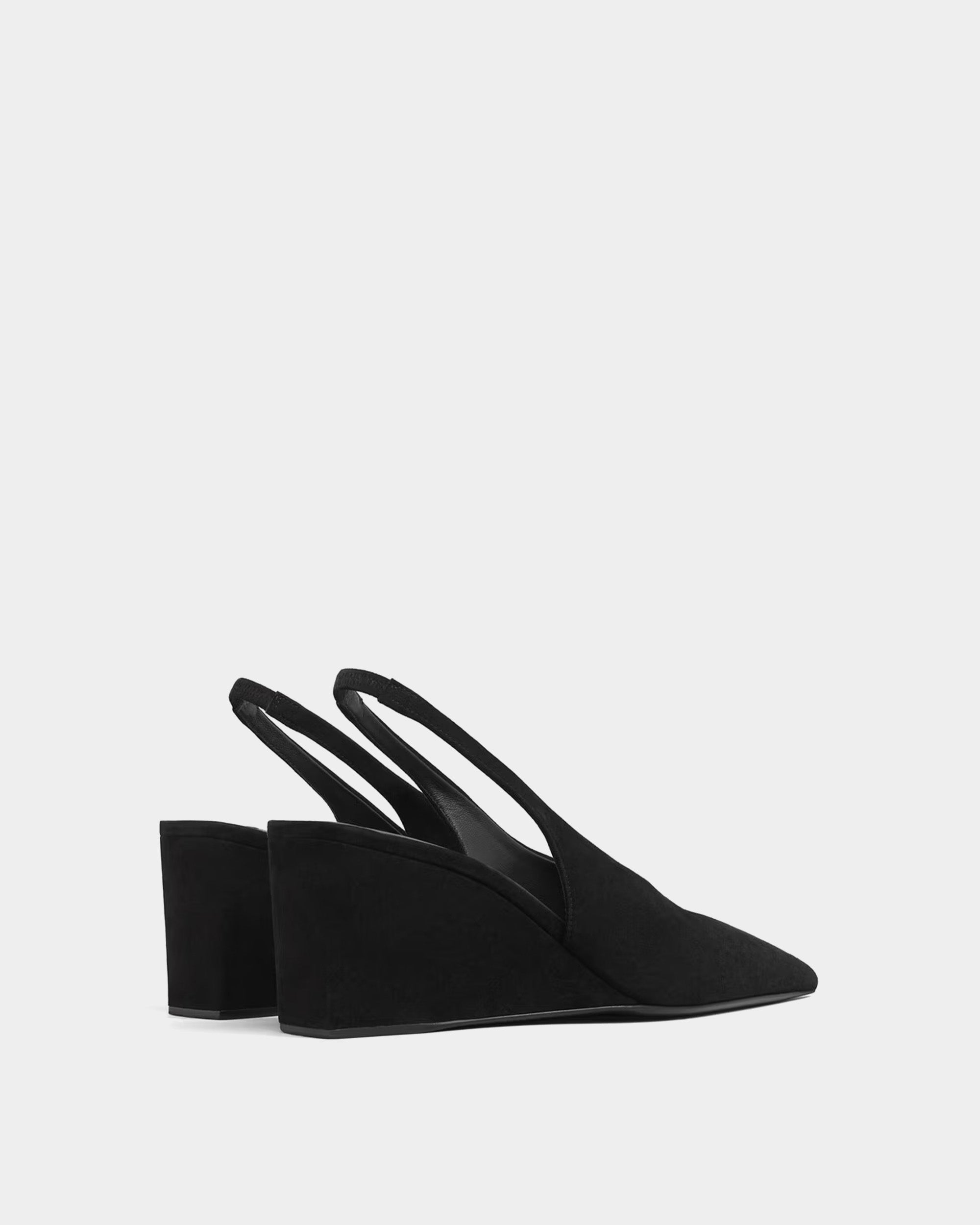 ALAÏA 麂皮尖頭幾何楔型後繫帶鞋