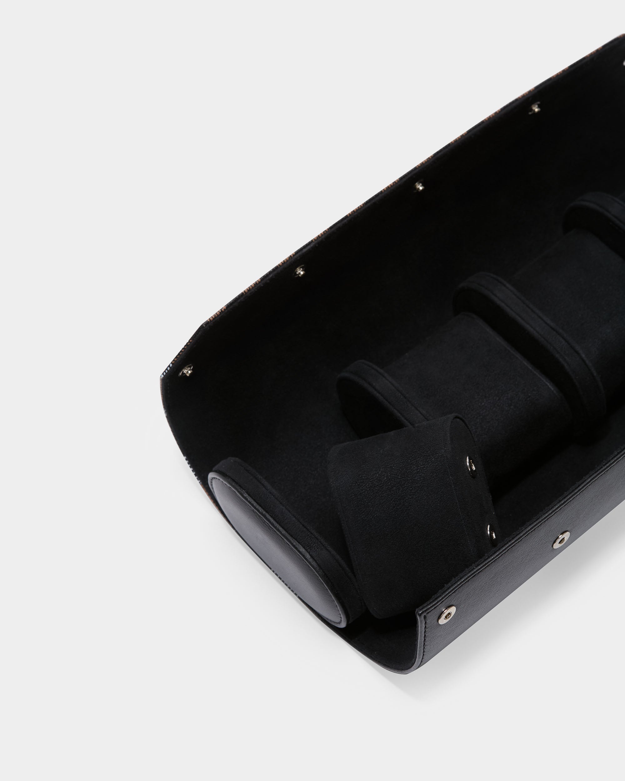 採用品牌標誌性幾何圖紋帆布,搭配細緻皮革包邊與結構式盒型設計。可同時收納四只腕錶,提供良好保護與穩定支撐,適合旅行、收藏或日常居家使用,展現低調而精緻的巴黎工藝美學。尺寸:L29.5 x H7 x W10 cm