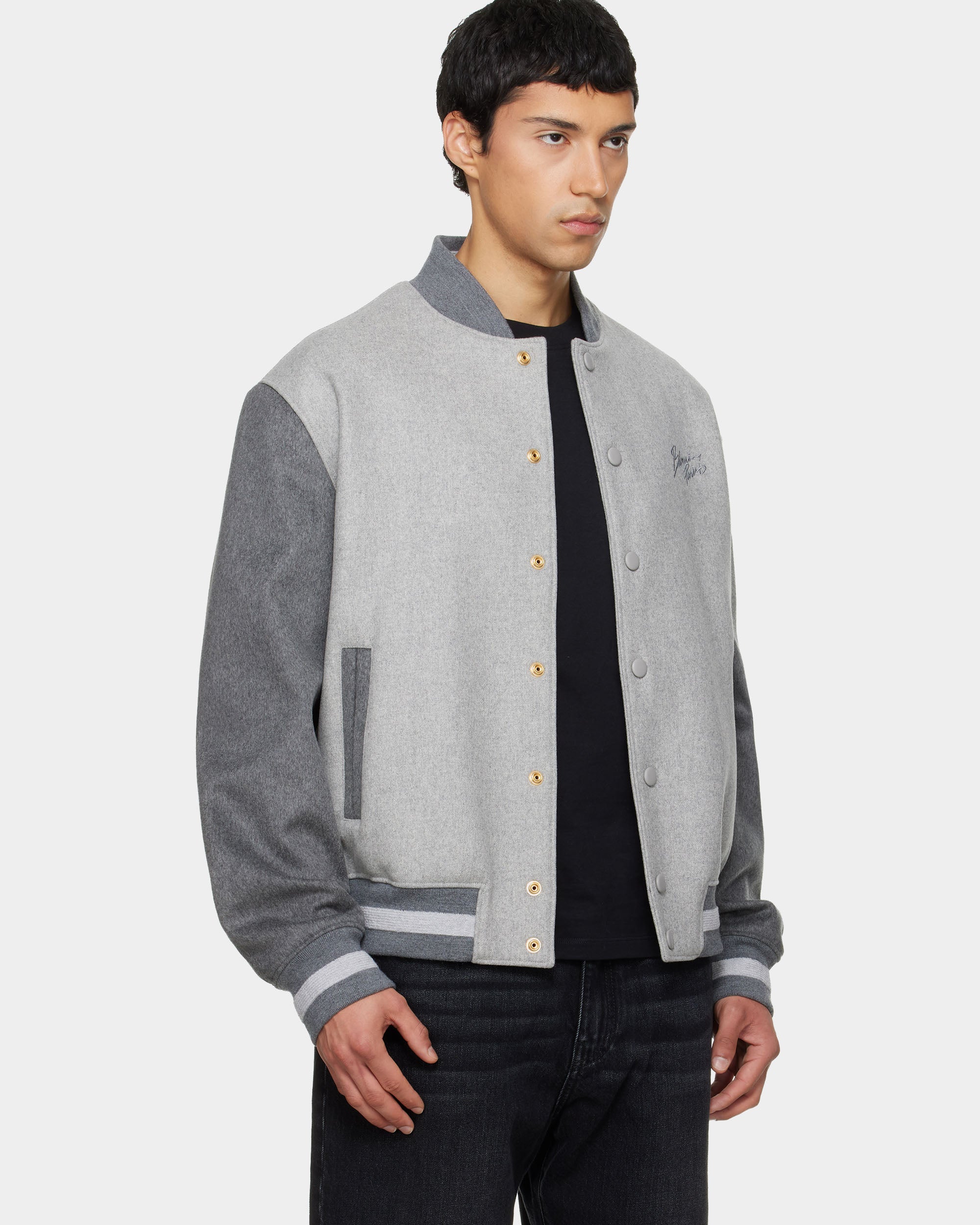 此款棒球外套以羊毛與喀什米爾混紡的 Melton 面料製作,手感厚實細緻,兼具保暖性與俐落輪廓。胸前飾有品牌標誌刺繡,低調點綴整體視覺。外套內裡採全件緞面襯裡,穿著滑順舒適,適合日常外出或都會休閒造型,展現經典運動風格中的精緻質感。