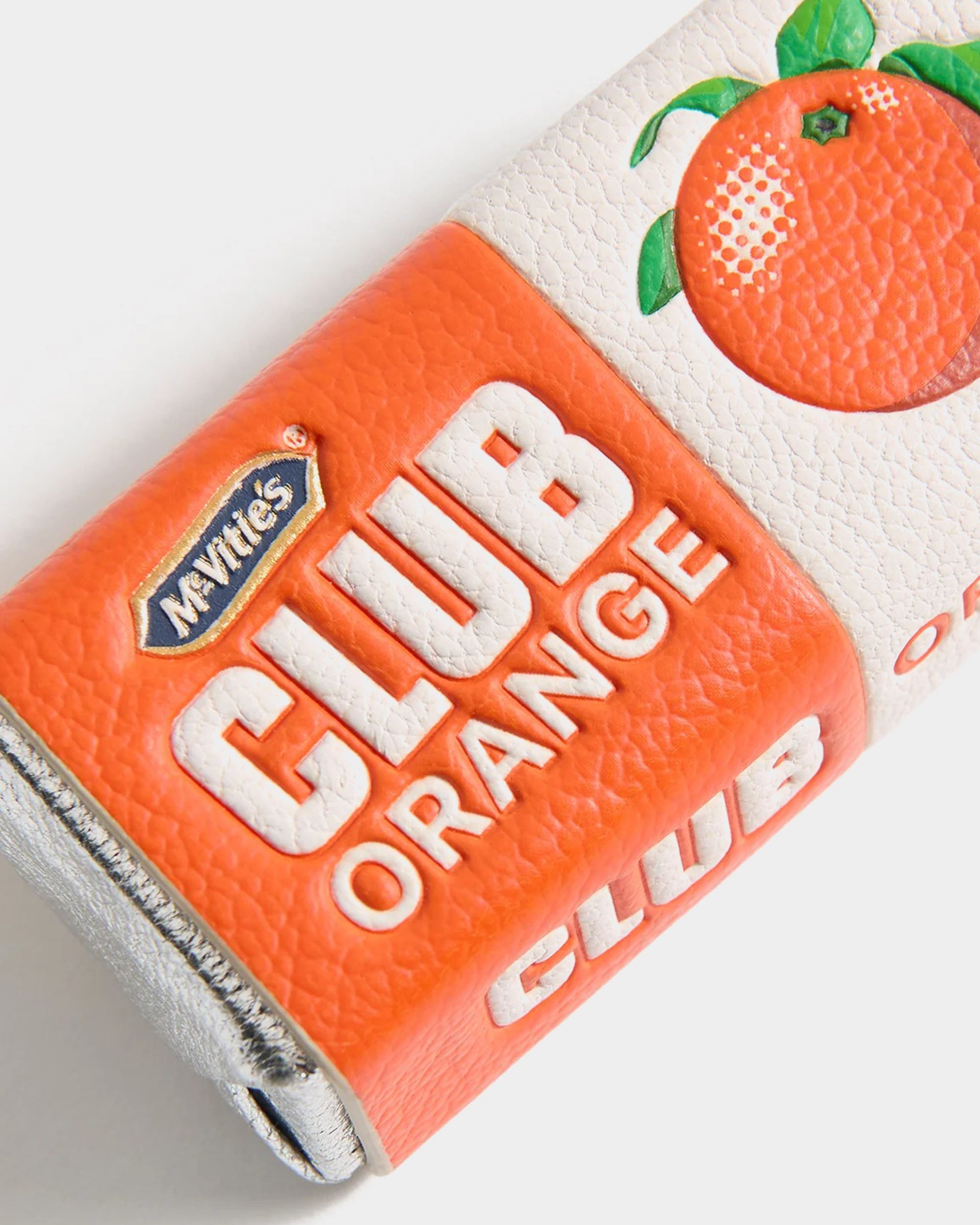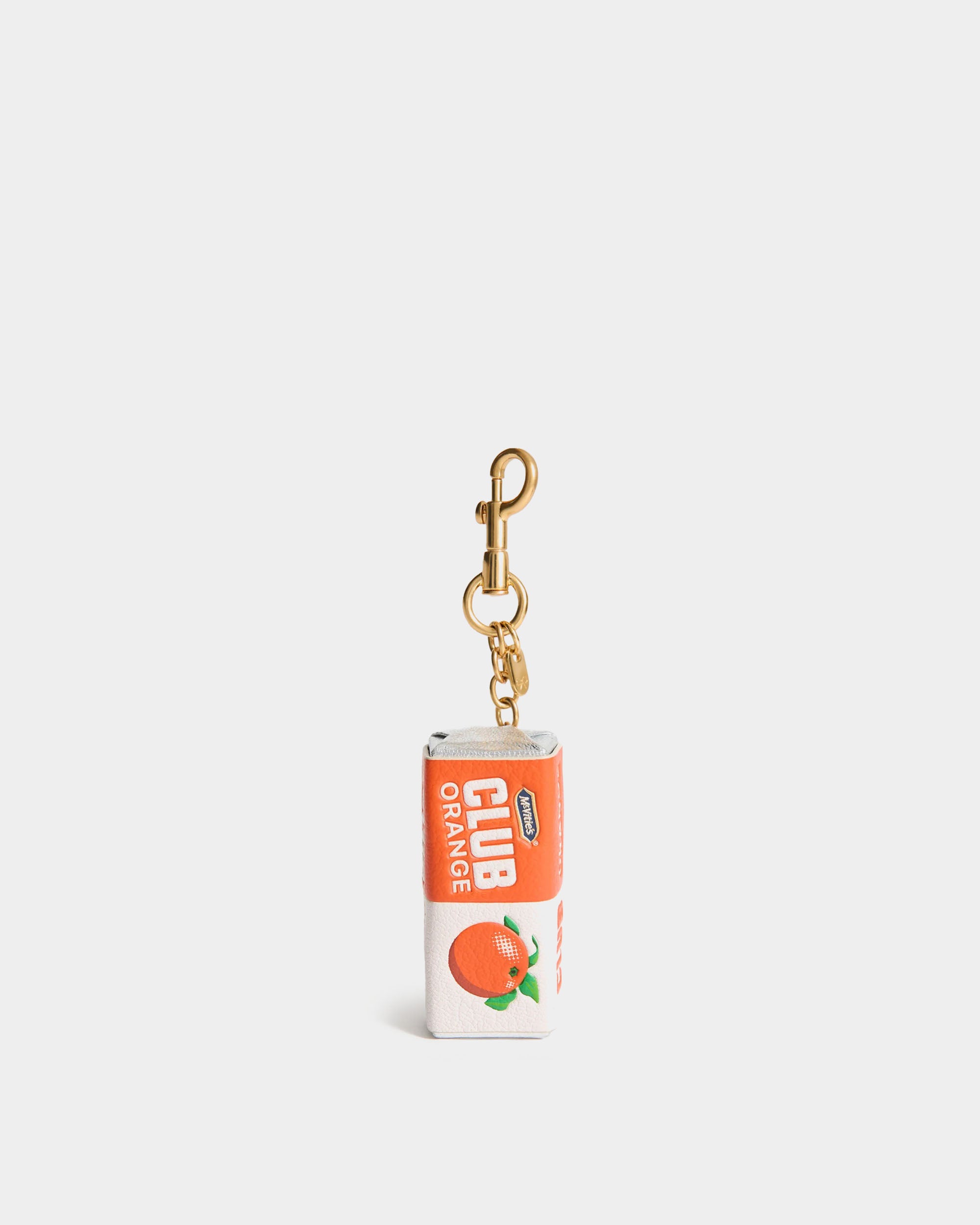 此款包包吊飾以英國經典餅乾 Club Orange 為靈感,將日常零食轉化為充滿趣味的設計配件。採用亮面柑橘色山羊皮製作,色彩鮮明且質感細緻,可單獨作為造型亮點,也能與多款吊飾自由搭配,營造層次豐富的個人風格。搭配金色金屬扣環,輕鬆固定於包款或鑰匙圈,為日常造型增添俏皮與識別度。