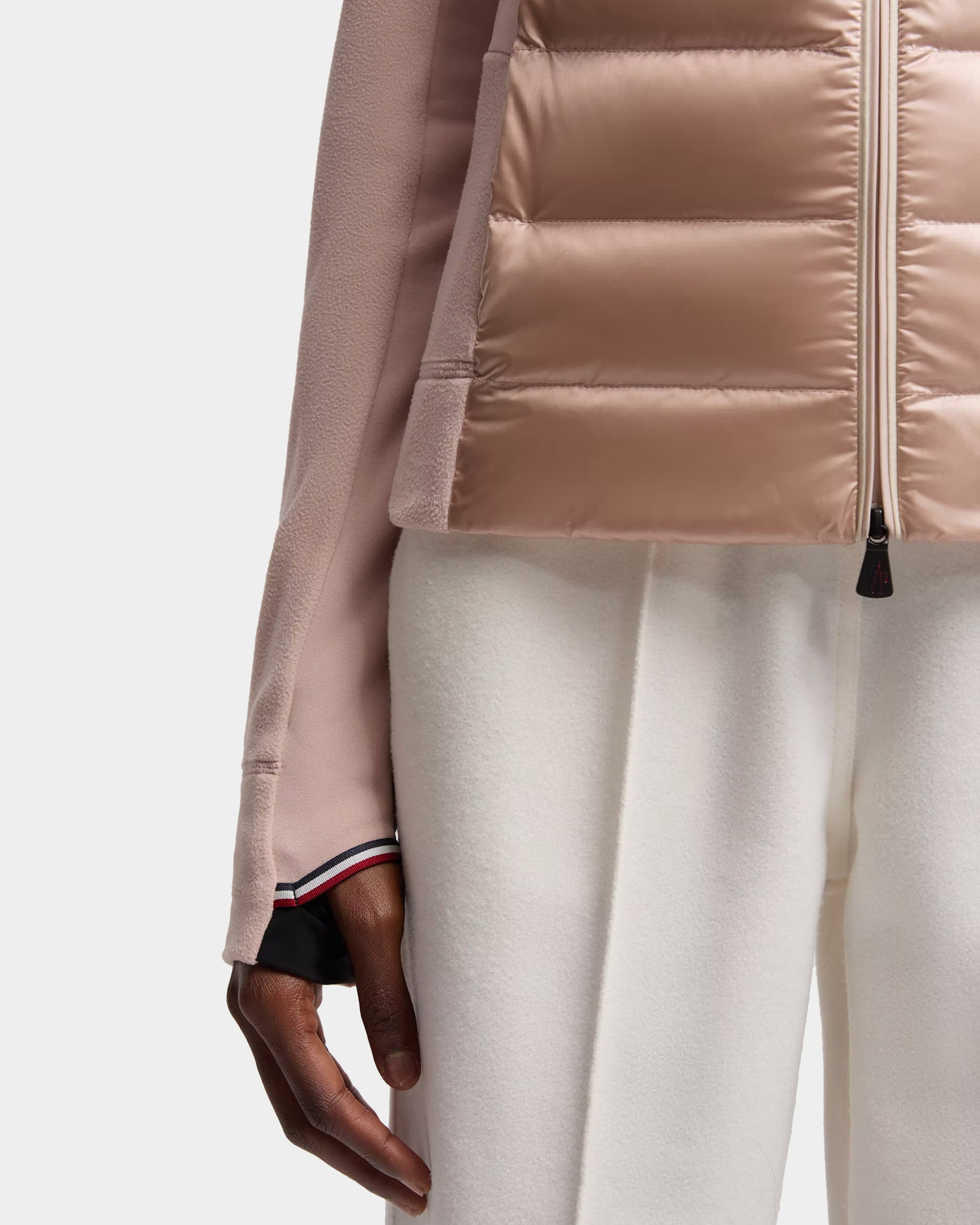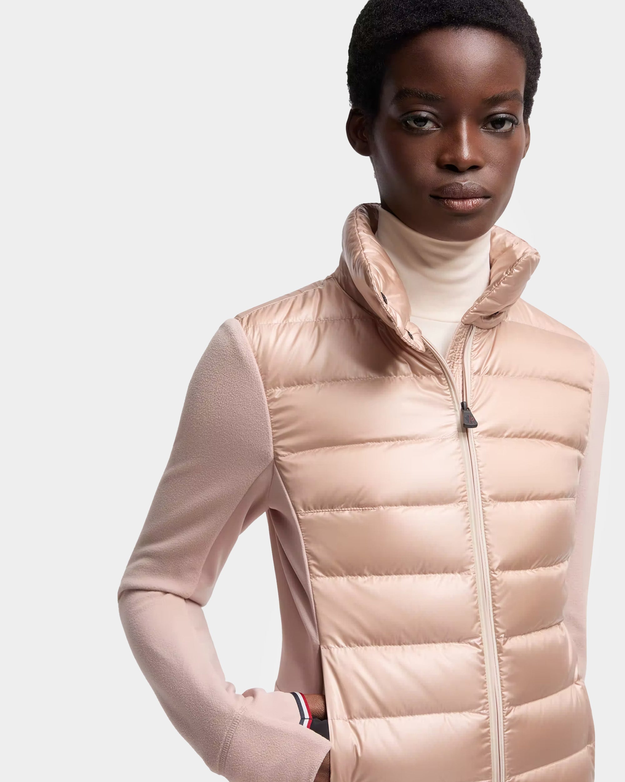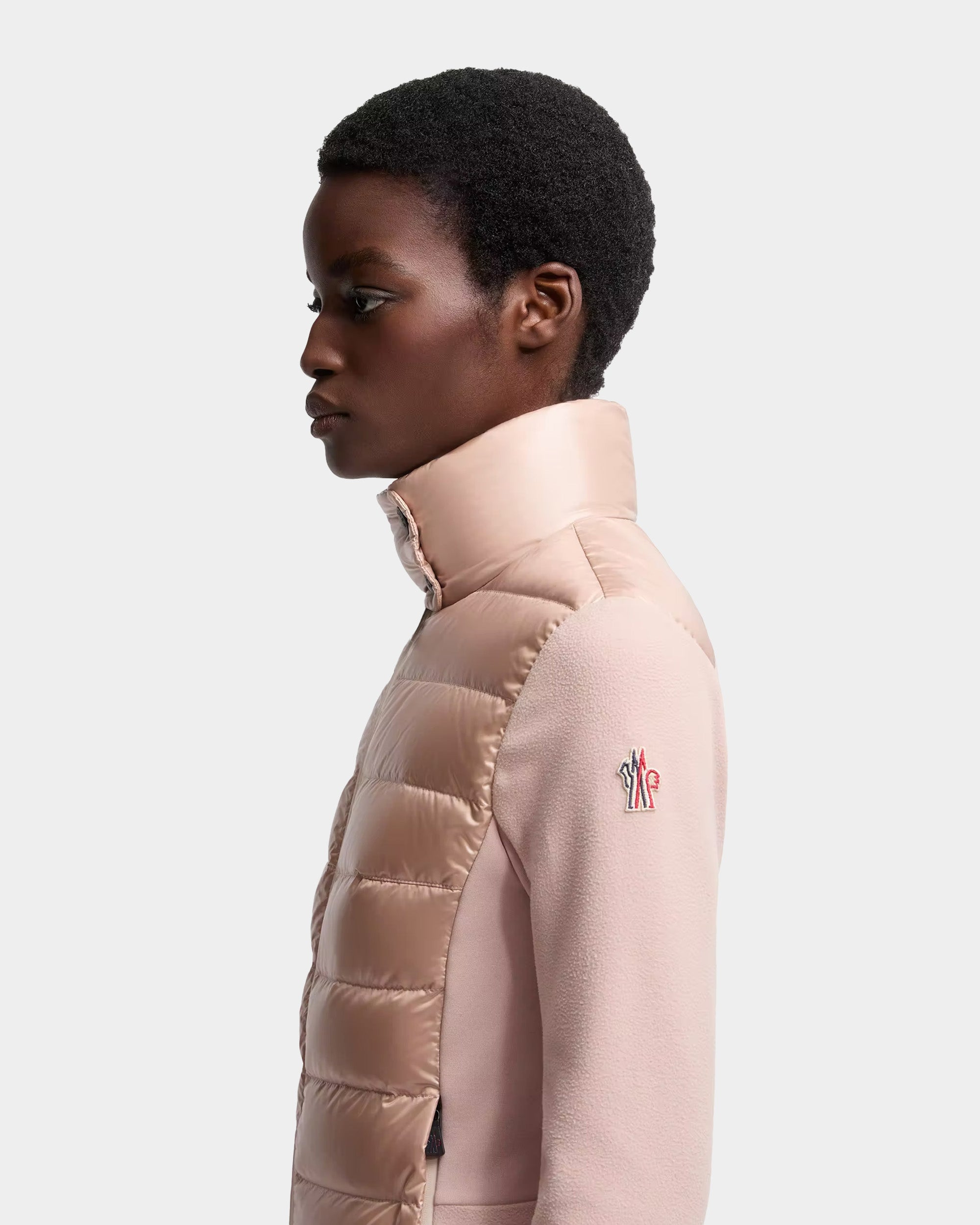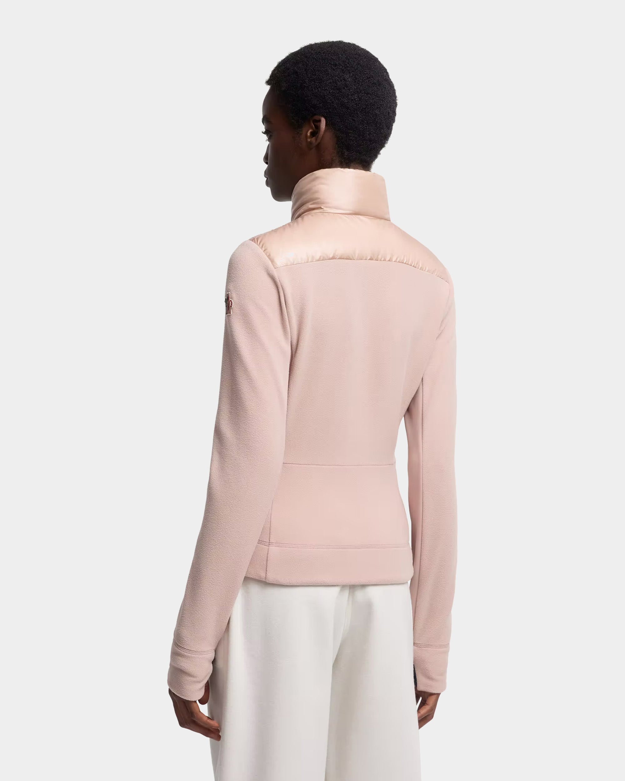 夾層拉鏈衛衣是來自 Moncler Grenoble 的設計,在征服最高峰的同時為女性增添一層額外溫暖。夾層衛衣設計為中間層,非常適合為軟殼外套增添保暖效果。這款拉鏈單品以彈性抓毛製作,前幅填充羽絨。前幅和衣領採用具有亮面塗層的輕質布料nylon laqué製成。