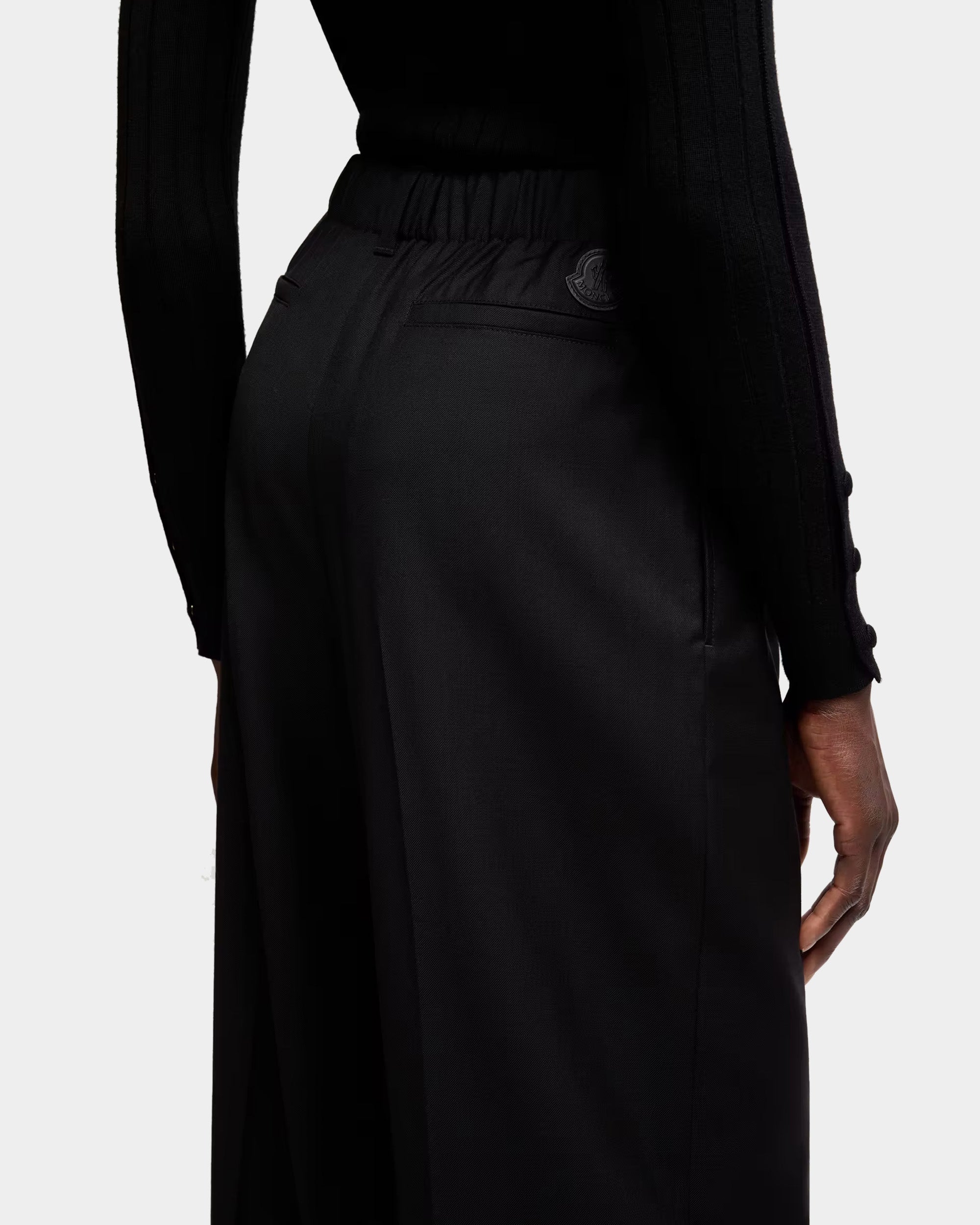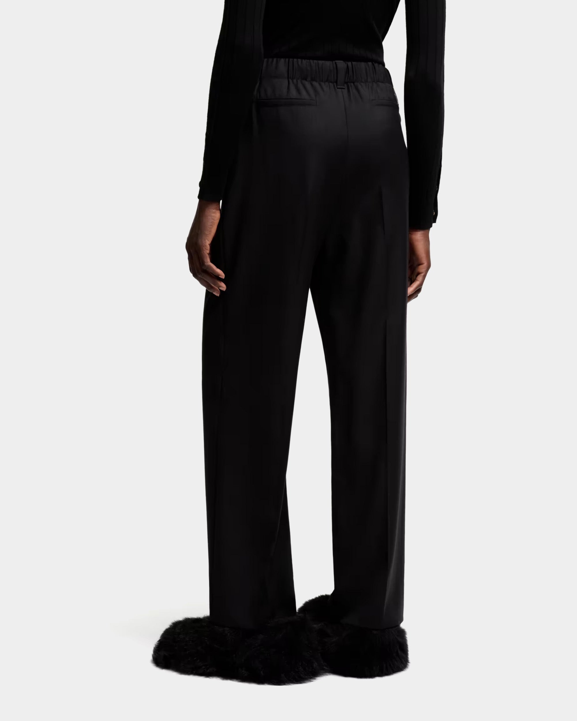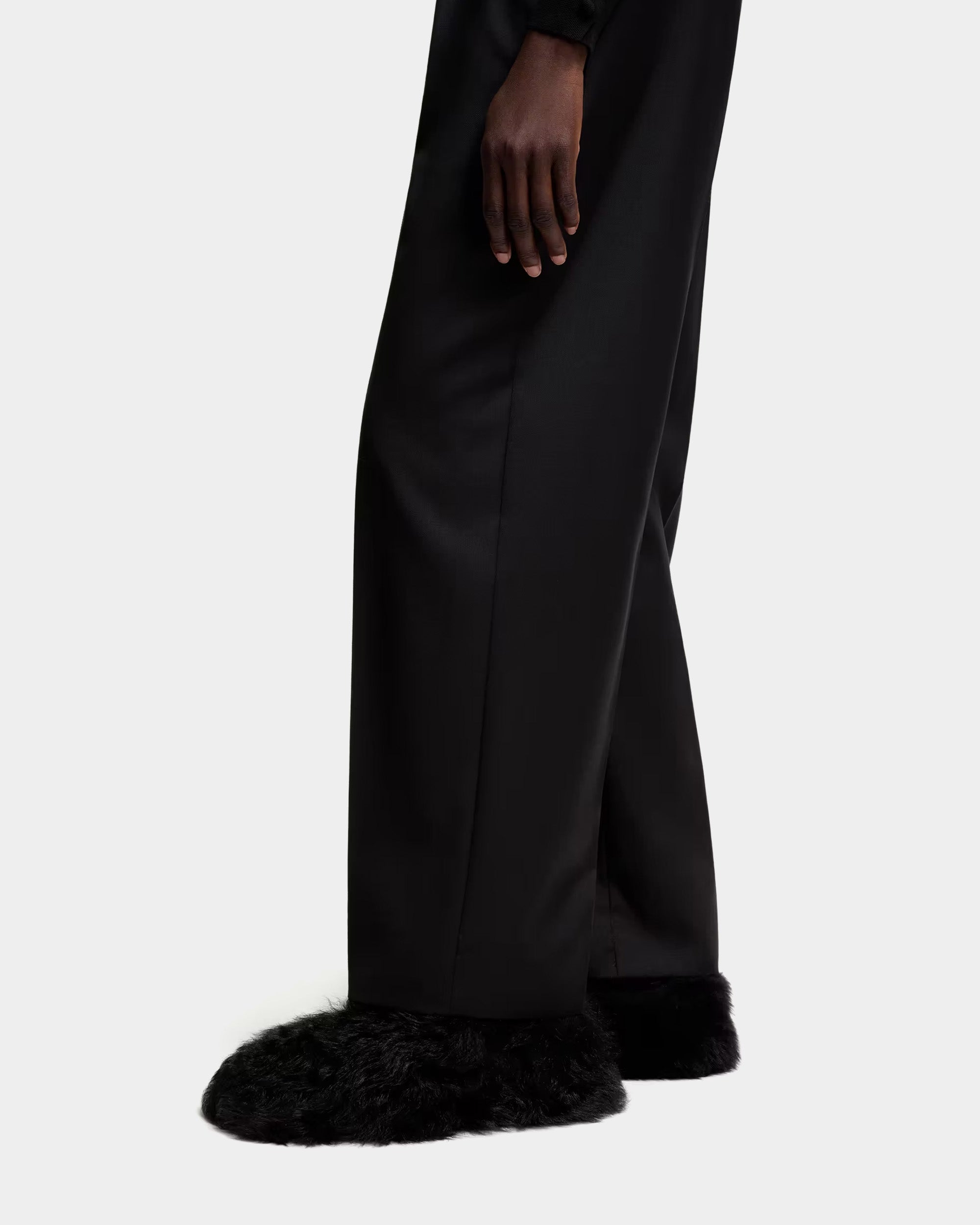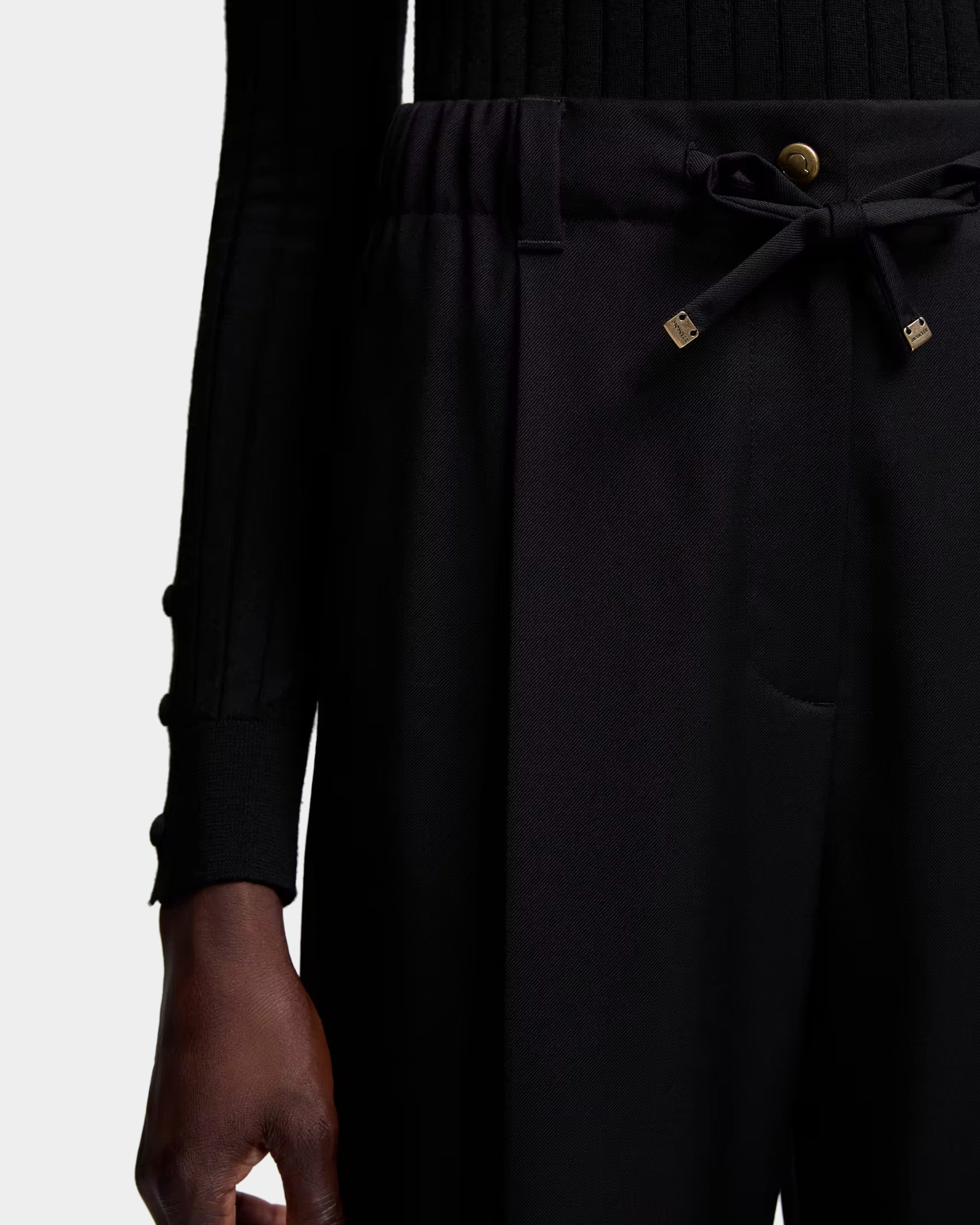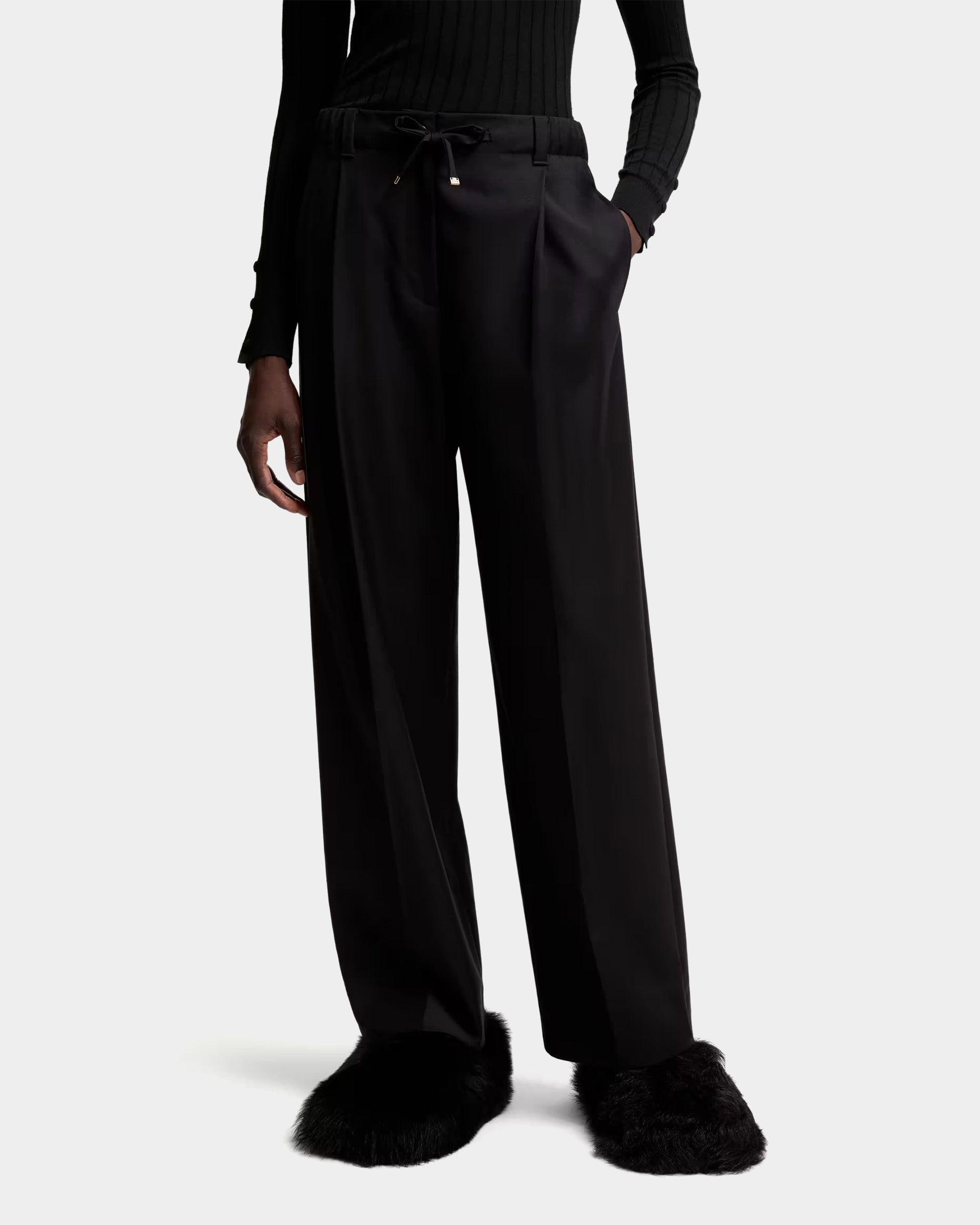 寬腿長褲是精緻的主打產品,採用羊毛製成。正面設有夾扣,剪裁合身。這款下裝配有可調式腰頭,確保完美貼合。