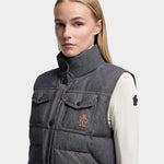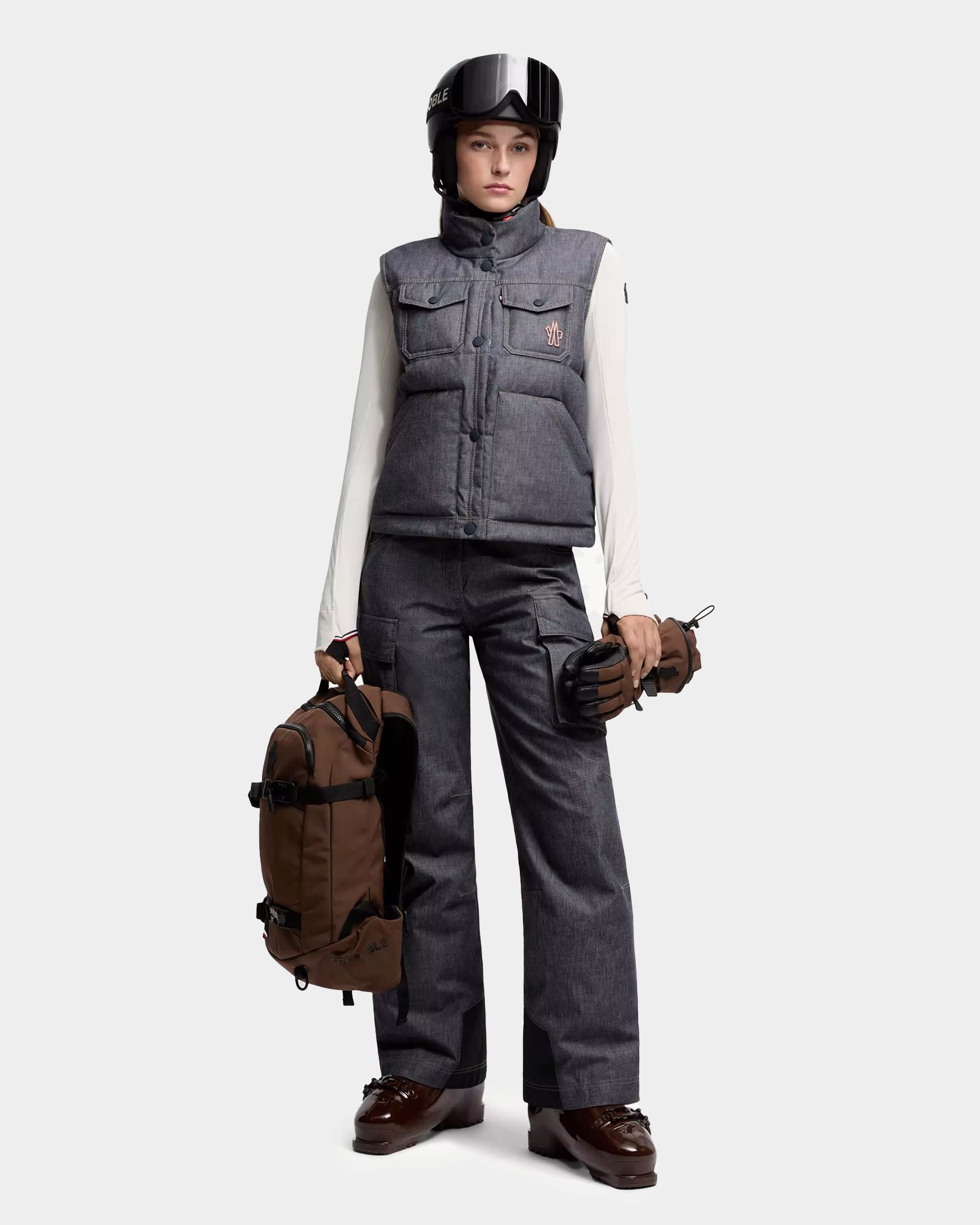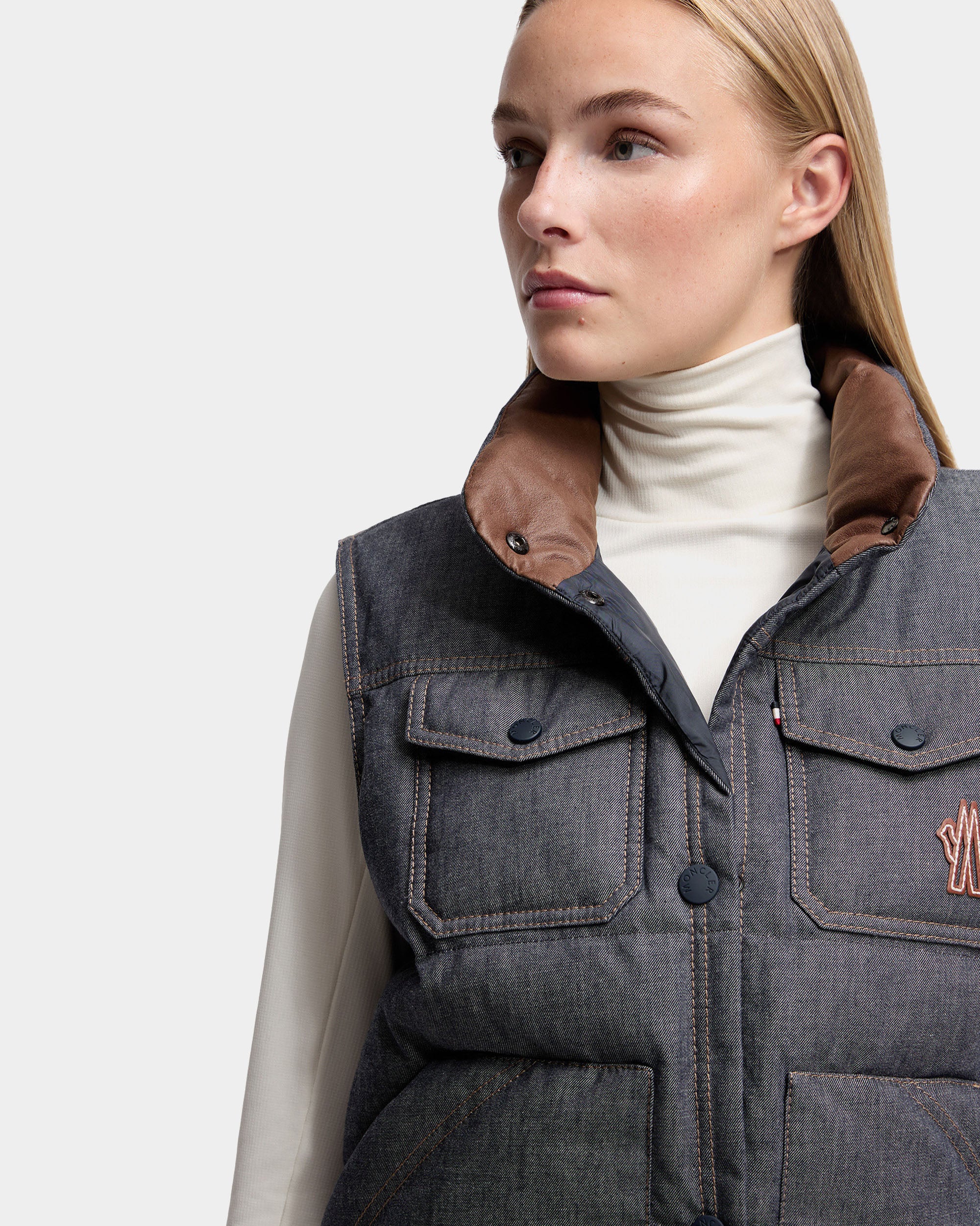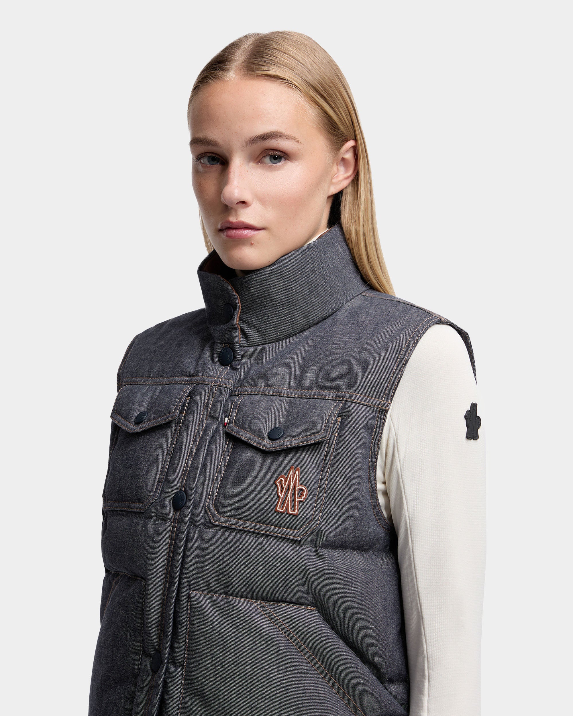 Moncler Grenoble Knysna女士羽絨背心以創新布料為焦點,為經典牛仔布注入別具技術感的全新風貌。