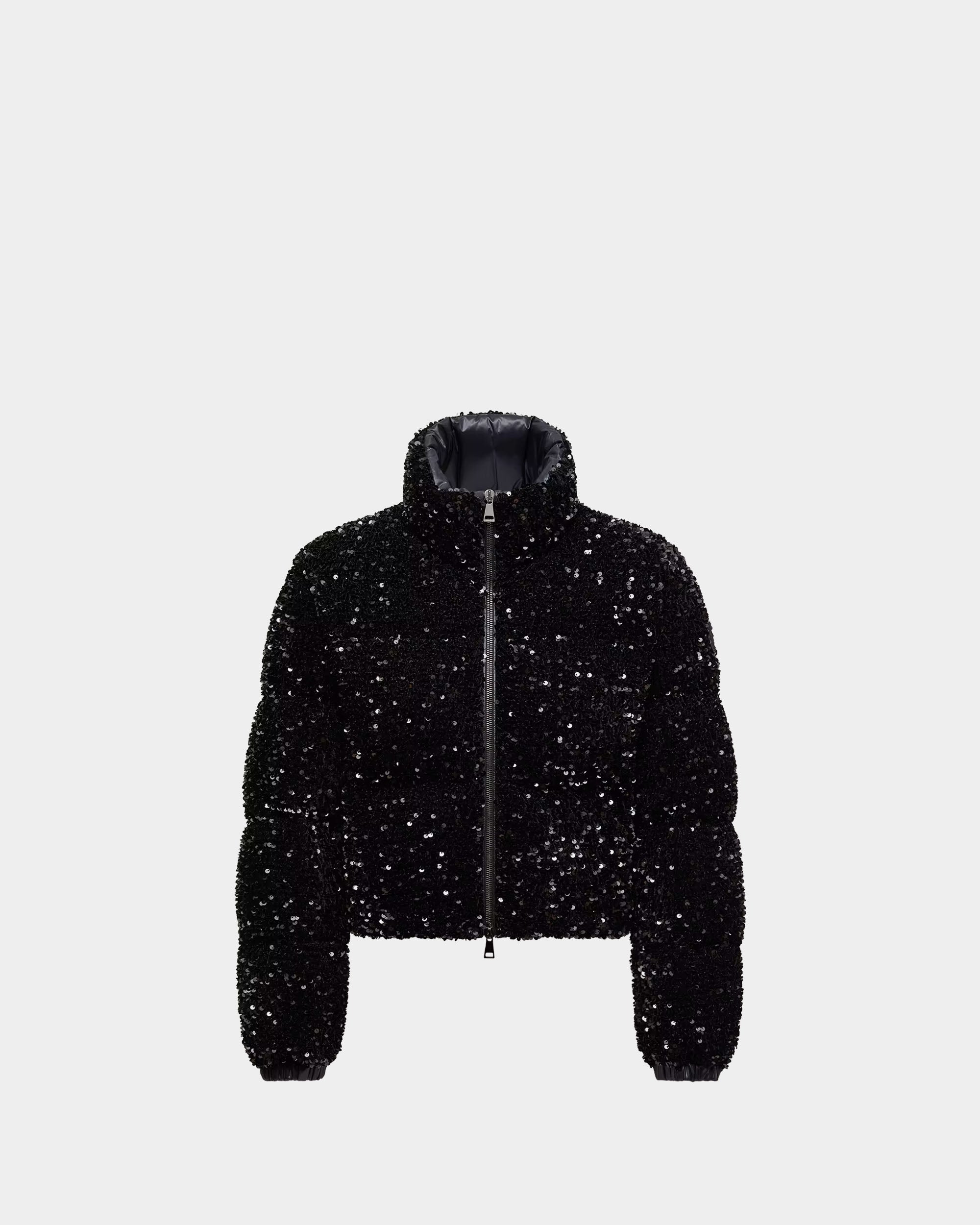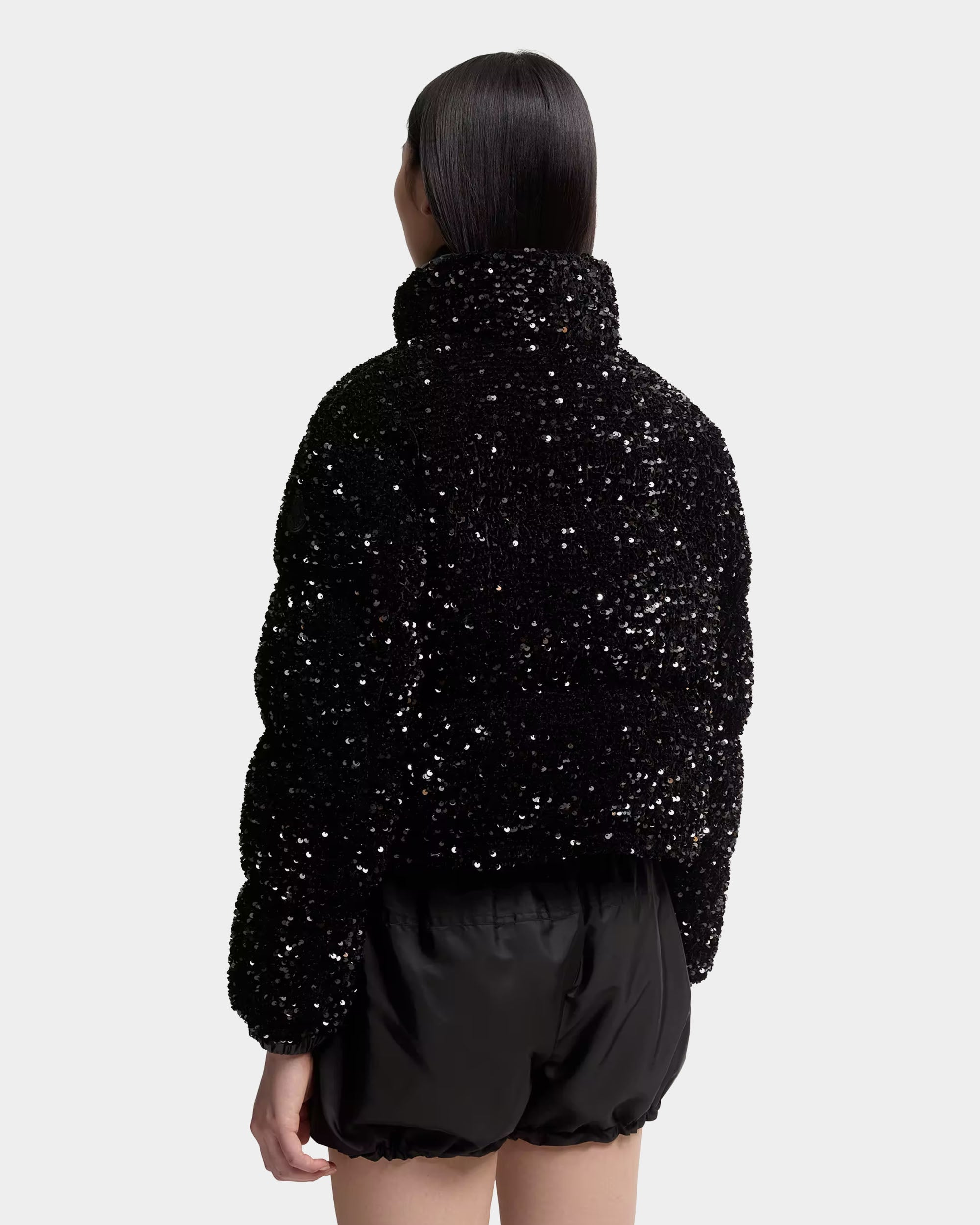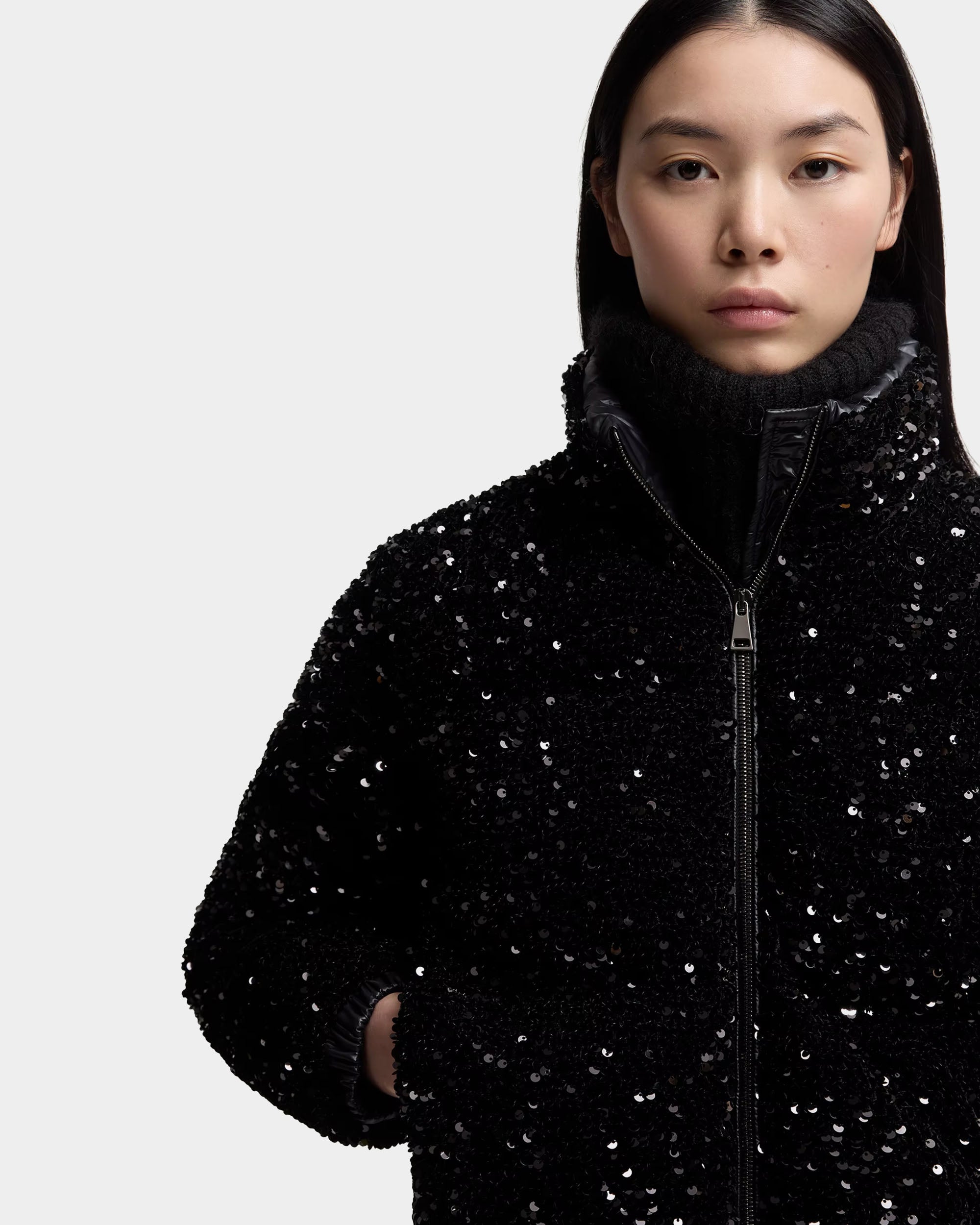 Louvi女士短身羽絨外套繡有閃閃發光的亮片,巧妙運用光線反射營造閃耀魅力。Louvi 短身羽絨外套高雅演繹外套,飾有亮片。這款引人注目的單品日夜皆宜,精緻質地提升寒季造型的格調。