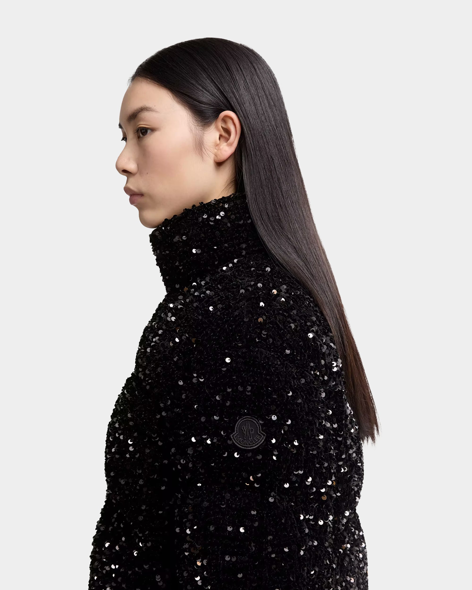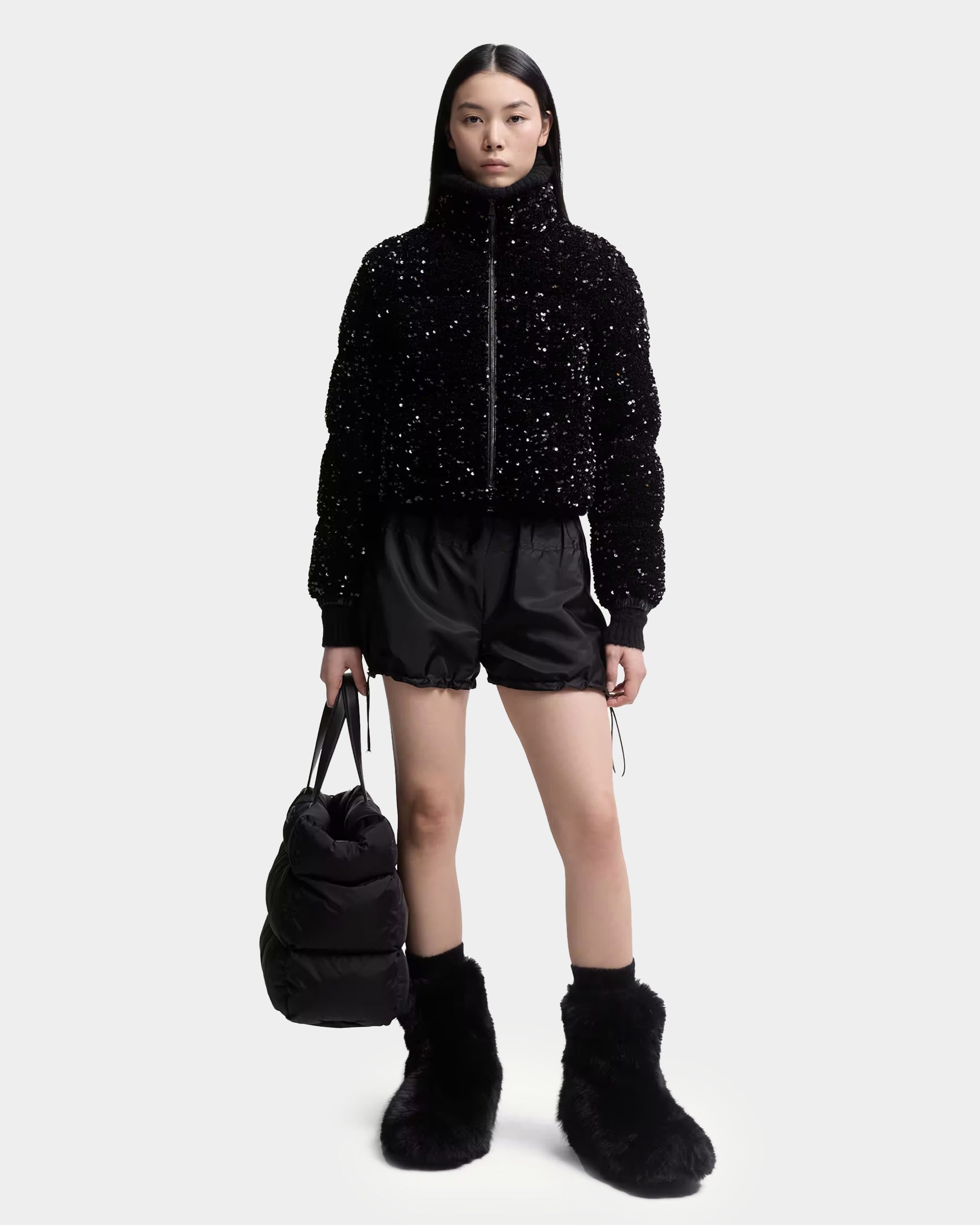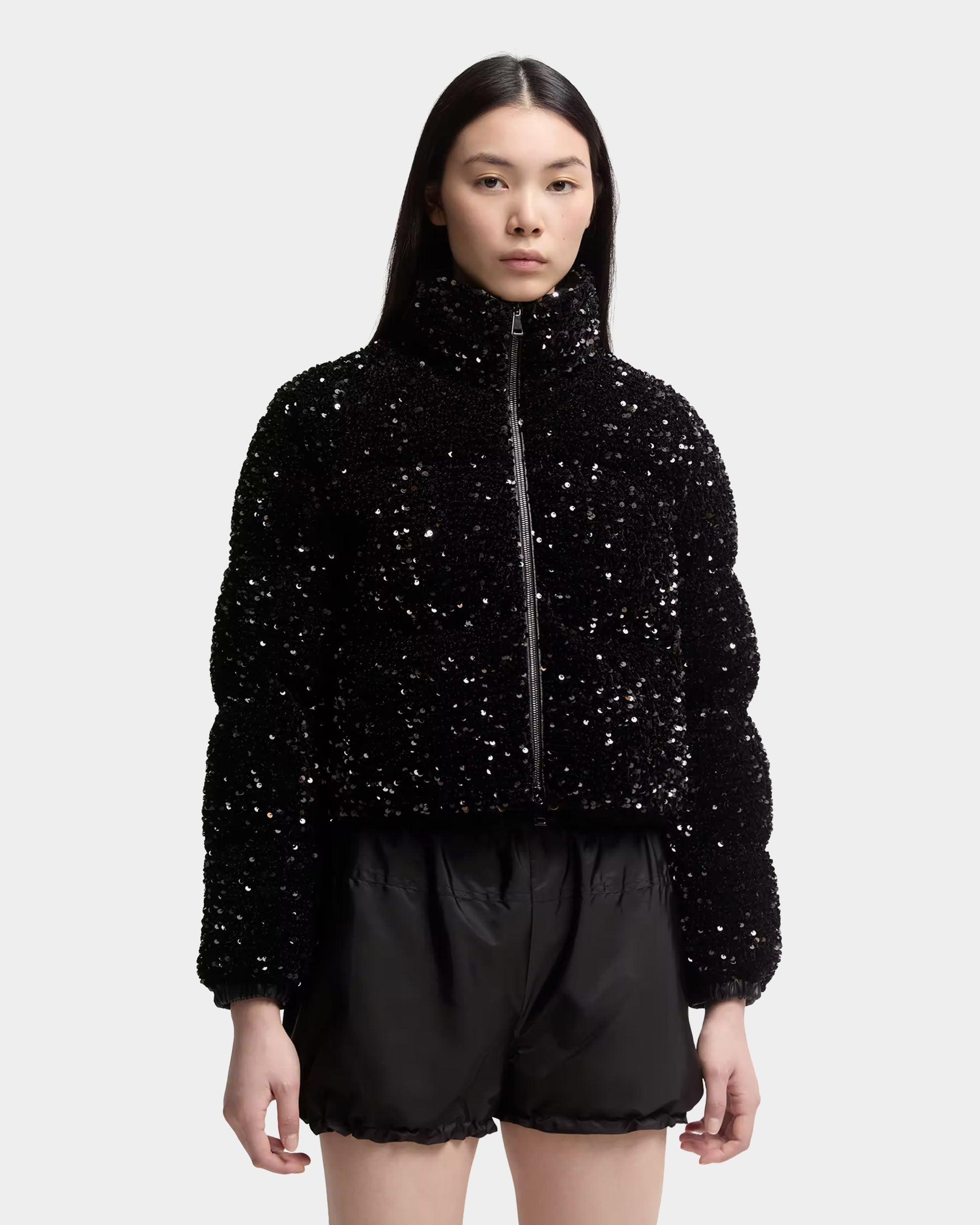 Louvi女士短身羽絨外套繡有閃閃發光的亮片,巧妙運用光線反射營造閃耀魅力。Louvi 短身羽絨外套高雅演繹外套,飾有亮片。這款引人注目的單品日夜皆宜,精緻質地提升寒季造型的格調。